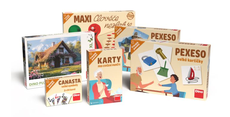 Dopřejte svým blízkým radost ze hry i ve zralém věku. Řada Trénink paměti od české značky Dino byla vyvinuta ve spolupráci s odborníky a reflektuje nároky starších hráčů. Pomáhá jim udržet v kondici nejen paměť, ale i schopnost se soustředit a vyjadř...