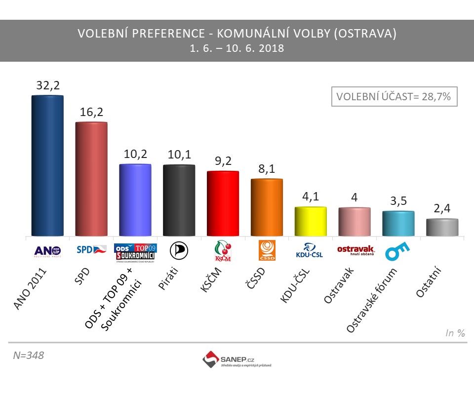 SANEP na základě červnového exkluzivního internetového průzkumu v šesti největších městech ČR došel k závěru, že komunálním volbám bude dominovat hnutí ANO. Velké šance na úspěch však budou mít dále ODS, Piráti, ale i SPD. Průzkum společnosti SANEP byl proveden v šesti největších městech ČR.