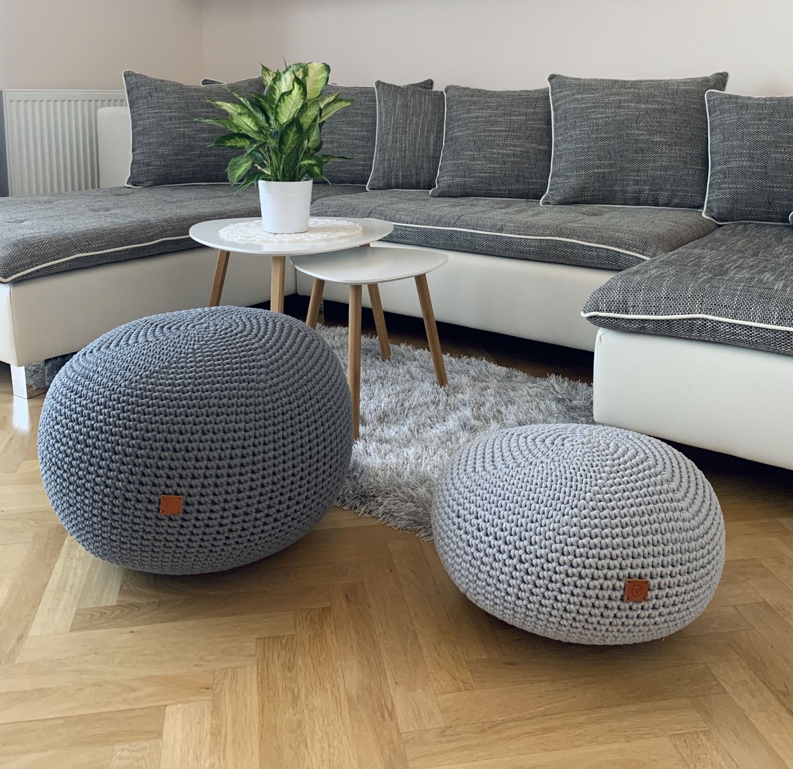 Puf ve veselé barvě rozsvítí váš obývací pokoj a vytvoří další místo k sezení u konferenčního stolku nebo poslouží jako podnožka. Pratelný háčkovaný obal můžete jednoduše sundat a jednou za čas třeba obměnit barvu, aby se neokoukal.