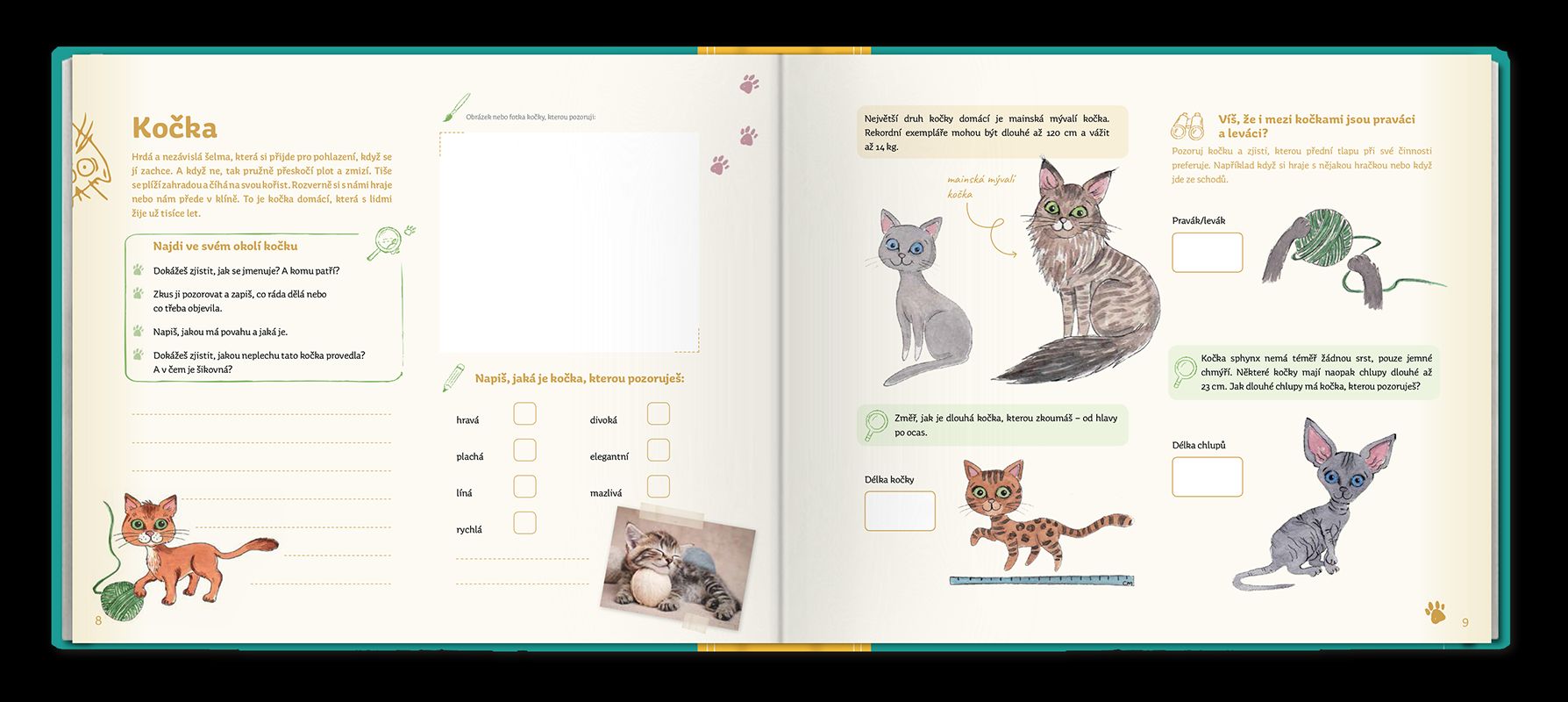 Můj atlas zvířat a rostlin je kniha, kterou si děti dotváří samy. Mladí autoři se stávají vědci a pátrají po zvířatech a rostlinách ve svém okolí. Kniha je vybízí, aby pozorovaly přírodu kolem sebe a své zážitky do ní zachycovaly. Děti se dozví nové a zajímavé informace například ze života ptáků, motýlů, včel, stromů, květin, ale i domácích zvířat. Přírodu kniha přibližuje formou zábavných úkolů, jako jsou pokusy, kvízy, ankety v rodině, hry, malování, pěstování rostlin či návody na tvoření. Kniha je určena pro děti od osmi do dvanácti let a byla ve spolupráci s odborníky připravena tak, aby rozvíjela dětskou kreativitu, komunikační dovednosti a zvídavost.