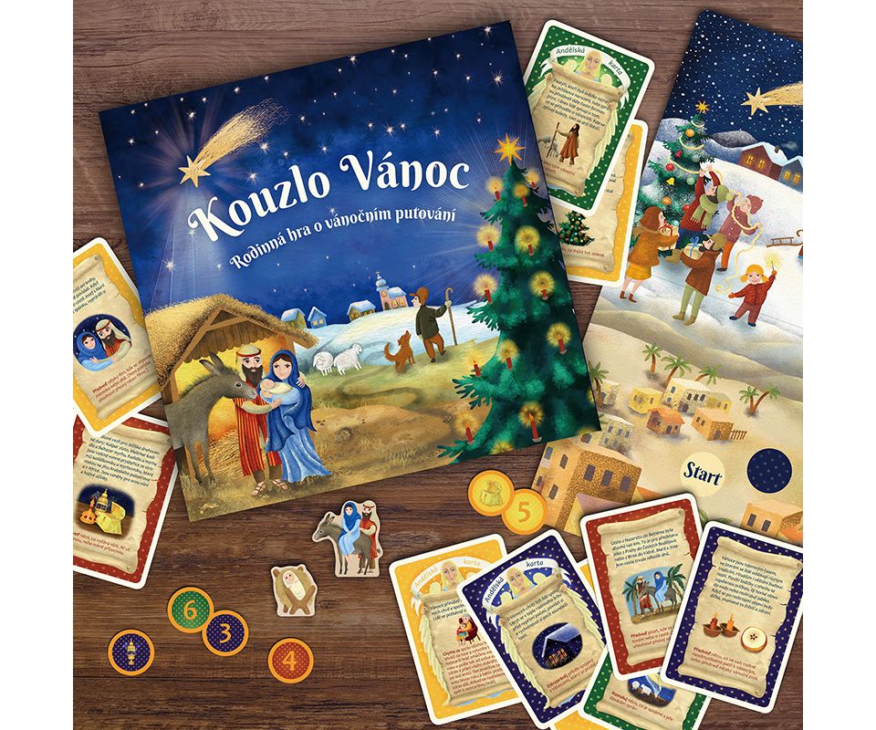 Zpříjemněte si dobu adventní společenskou hrou Kouzlo Vánoc, díky které si s rodinou užijete plno zábavy a té pravé vánoční atmosféry. Pomozte společně Marii a Josefovi dostat se do Betléma. Cestou budete plnit různé úkoly a dozvíte se zajímavé věci o Vánocích. Kdo dokáže předvést vánoční koledu? Kdo připraví ten nejlepší vánoční nápoj? Víte proč k Vánocům patří vánoční stromeček? A co všechno víte o vánoční hvězdě?