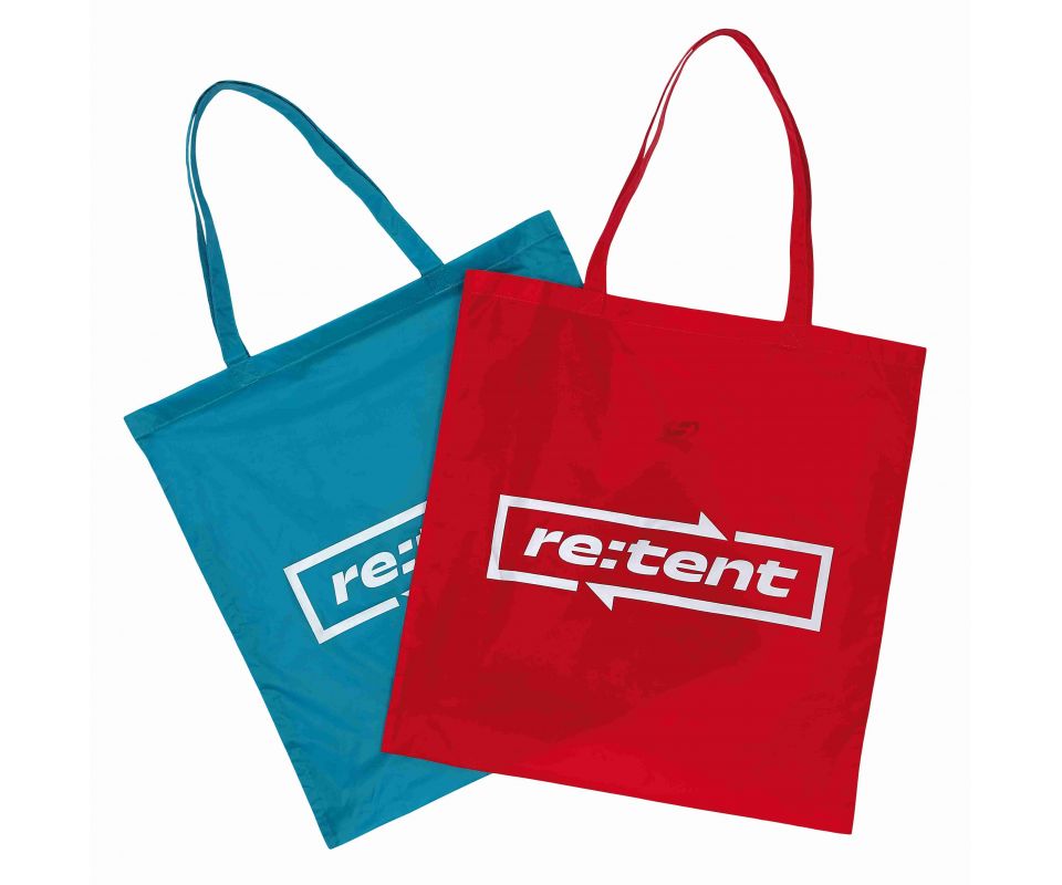 RE:TENT taška je tak alternativou k jednorázovým taškám, které dostáváme v obchodě při nákupu. V kapse můžete mít pořád kousek stanu, do kterého se vejde celý nákup. Díky použitému materiálu je možné tašku složit tak, aby nezabírala moc místa a mít ji vždy po ruce. Šetříte tak spotřebu igelitových či papírových tašek, navíc podpoříte i myšlenku recyklace a dalšího využití produktů. Tašky jsou vyrobené z nylonu nebo polyesteru a jsou tak snadno omyvatelné a udržovatelné. Díky použitému materiálu mají nosnost 10 kg+, nemusíte se tak bát, že v RE:TENT tašce nákup poztrácíte cestou domů.
