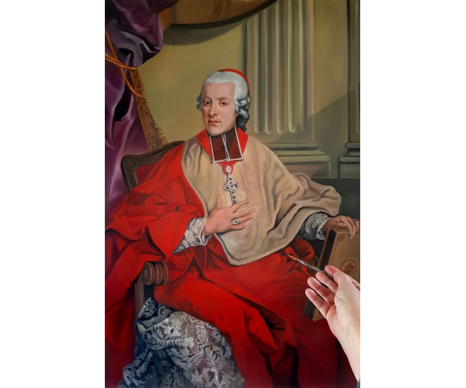 S panem kastelánem, Eduardem Valešem, máme kromě úpravy a doplnění interiérů, i jeden gigantický projekt. Na chodbách v prvním patře, které vedou do komnat, zakládáme zámeckou obrazárnu příbuzných šlechtických rodů Thun-Hohenstein, Tenczin-Paczinsky, Pino-Friedenthal, baronů von Bartenstein a kníže arcibiskupa von Colloredo-Wallsee und Mels. Pan kastelán získal ve spolupráci se Zámkem Kunín a díky přátelským vztahům s pozůstalými šlechtickými rodinami v Německu, Rakousku a Polsku, fotografie originálů, podle kterých maluji kopie. Své svolení pro kopii těchto obrazů nám vydal i Národní památkový ústav. Bude to něco kolem dvaceti dobových obrazů v oleji na plátně, které se stanou inventářem zámeckých interiérů.