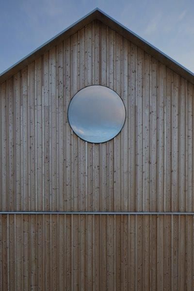 „Řemeslné detaily fasád, které jsou typické pro Beskydy. objekty oživují. Jsou navrženy tak, aby byly funkční, snadno udržovatelné a aby exteriér budov postupně přirozeně stárnul,“ uvádí architekt. Exteriéru skutečně vévodí převážně samotné dřevo. Na nic víc si budova nehraje. Na první pohled ale nechává vyniknout nepřehlédnutelná bezrámová kulatá okna, vyrobená truhlářem na míru. Jsou větší či menší, není jich mnoho, ale už proto jsou dominantou. Zajímavostí nejsou pouze nyní, stala se totiž oříškem již při stavbě. „Práce se sklem byla velká zkušenost. Zjišťovali jsme, jaké můžeme použit technologie, jaké profily se dají osadit a vyrobit a jaké již překračují současné výrobní a technologické možnosti,“ vzpomíná s úsměvem architekt.