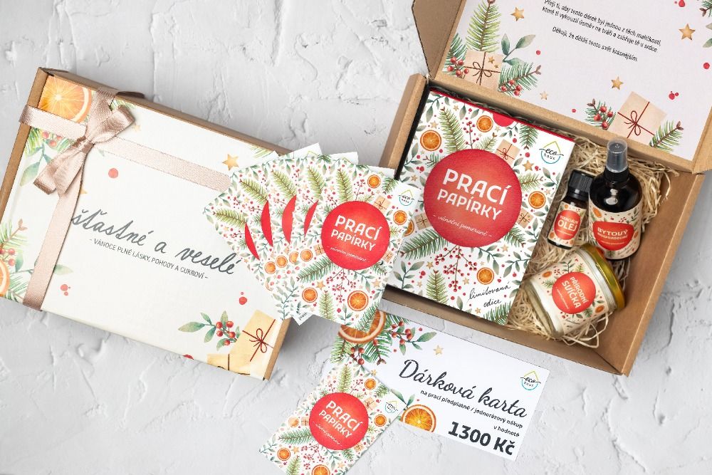 Edice je vytvořena s takovou péčí a láskou, aby oslovila všechny milovníky kouzla Vánoc. Krabička, ve které jsou produkty baleny, zaujme na první pohled svým designem. V balení najdete prací papírky EcoHaus, které vystačí na 60 praní a nesou vůni vánočního pomeranče – vůni, která připomíná zimní večery plné pohody a klidu. Dále malou sadu 6 kusů pracích papírků, které se hodí pro menší praní nebo jako krásný dárek pro přátele, bytový rozprašovač, přírodní svíčku a esenciální olej, který je skvělý pro použití v aromalampách nebo difuzérech, nebo jej můžete přidat do koupele a užívat si tak dokonalý relaxační zážitek.