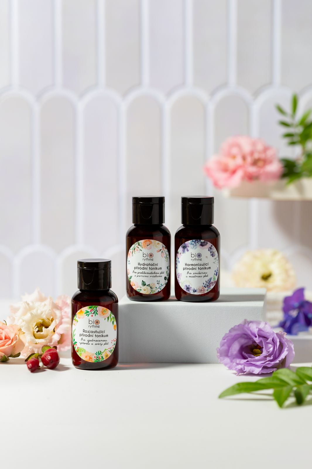 Tonika od BIORYTHME jsou unikátní zejména proto, že místo obyčejné vody jsou založená na hydrolátech (květinových vodách) z francouzské destilerie, a díky tomu kouzelně voní. Mají vysoký obsah aktivních látek a poskytují prokazatelnou hydrataci a probiotika harmonizují kožní mikrobiom.
