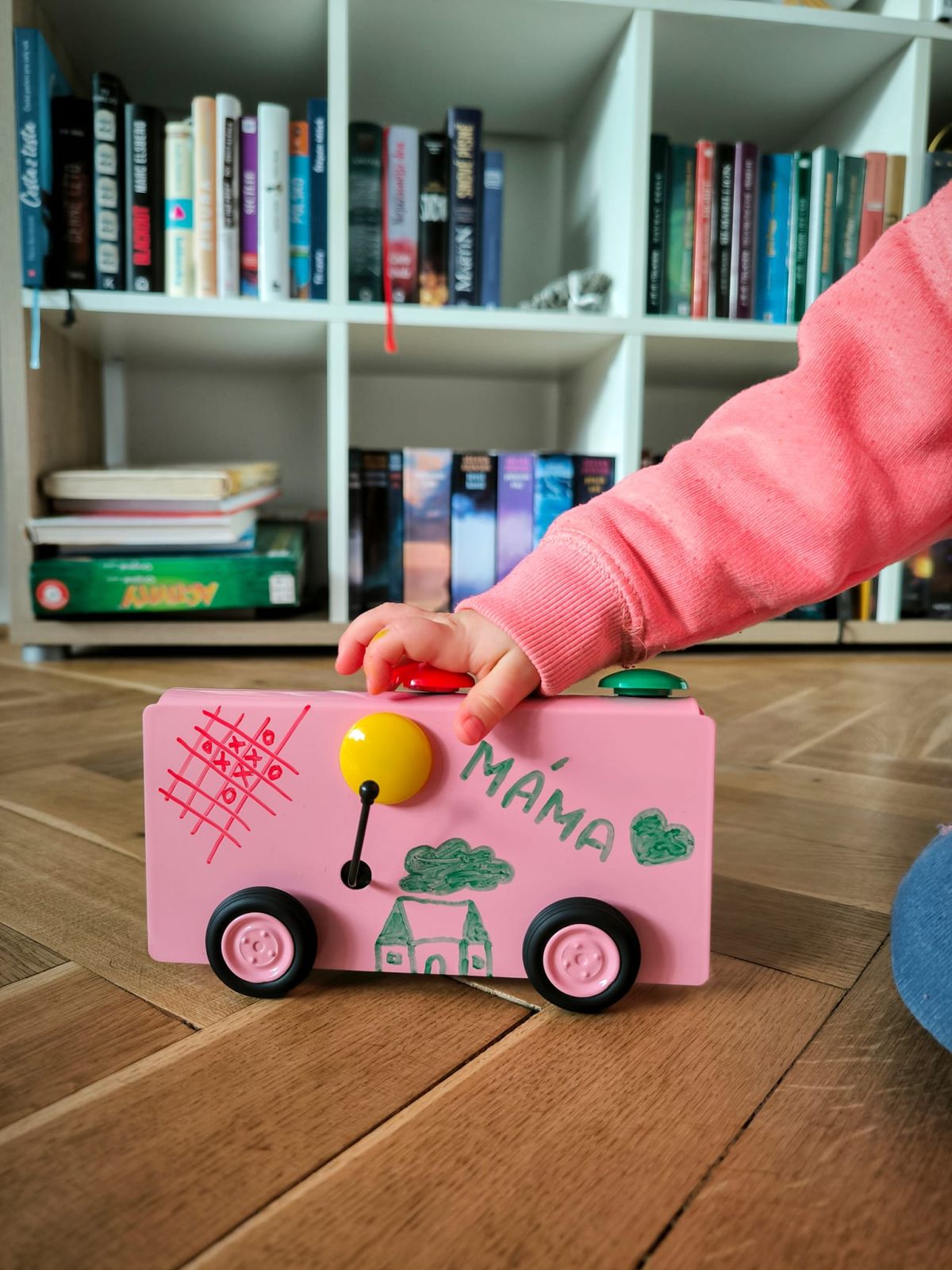 Pod vtipným názvem FOFRTABULE se skrývá barevná plechová tabulka na kolečkách, vytvořená ve spolupráci s designérským studiem Qubus. Tabulka umožňuje dětem i dospělým kreslit, psát vzkazy nebo ji ozdobit magnety. Díky mechanickému strojku se pak může sama rozjet – třeba se vzkazem až na druhý konec stolu. Hračka tak spojuje klasické kovové řemeslo s nápaditým designem a interaktivní zábavou.