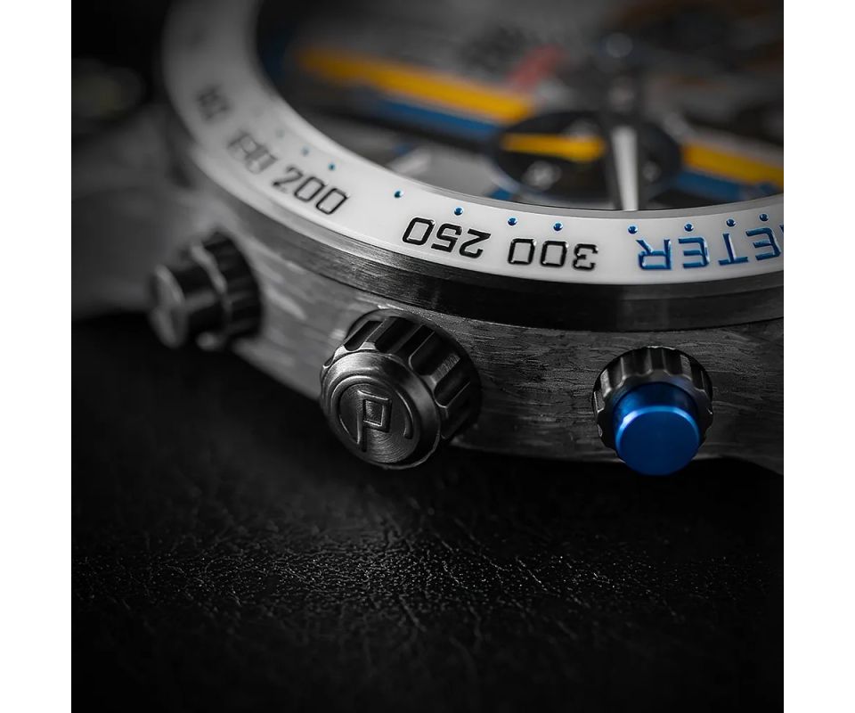 Pocta legendám si žádá mimořádné zpracování. Pouzdro hodinek je vyrobeno z uhlíkového vlákna (karbonu), který ovládl svět motorsportu díky své lehkosti, pevnosti a odolnosti a stal se symbolem technologické dokonalosti. Stejně jako závodní speciály, i hodinky PRIM Dakar Liaz 1985 spojují výkon, preciznost a odvahu posunout hranice. Každý kus má navíc díky unikátní struktuře vlastní neopakovatelný vzhled.