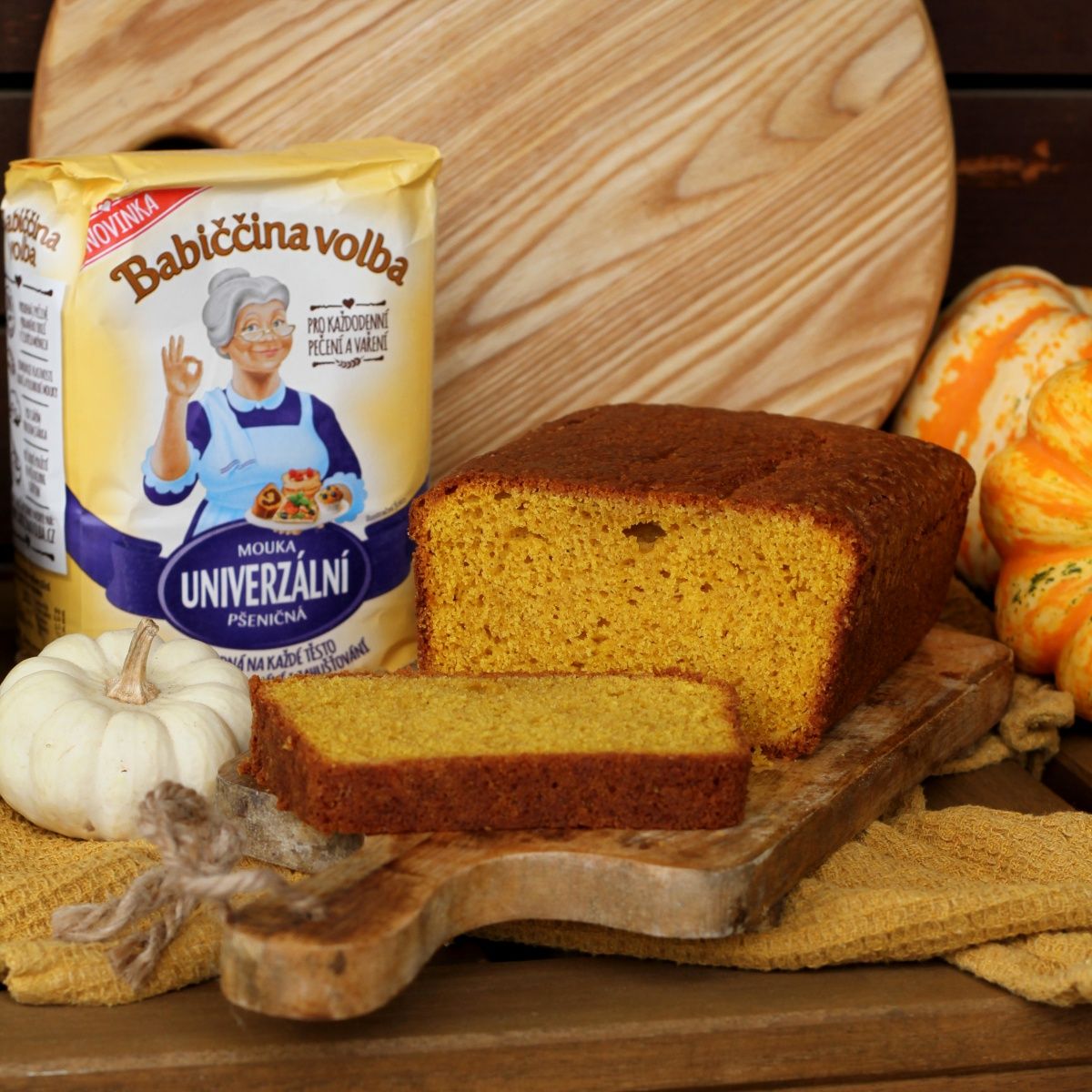 Ať už se rozhodnete upéct si dýňový chlebíček z jakékoliv dýně, věřte, že se danému druhu dokonale přizpůsobí Univerzální mouka Babiččina volba. Tato pšeničná varianta v sobě spojuje ty nejlepší vlastnosti hladké a polohrubé mouky a díky optimální struktuře a kvalitě lepku se jedná o ideální řešení pro téměř jakékoliv pečení, zvládne navíc také obalování či zahušťování pokrmů. Z pečení je nejvhodnější pro přípravu bábovek, štrúdlů, muffinů, různých typů koláčů, ale také z ní uděláte oblíbené palačinky či lívance. Naopak ze slaných pokrmů se nejvíce hodí pro pečení slaného pečiva, například rohlíků. Nejdůležitější ale je, že vám ušetří čas při výběru té nejvhodnější mouky a vy se tak bez starostí můžete pustit do přípravy chutného a zdravého dezertu, který vás dokonale udrží na podzimní vlně.