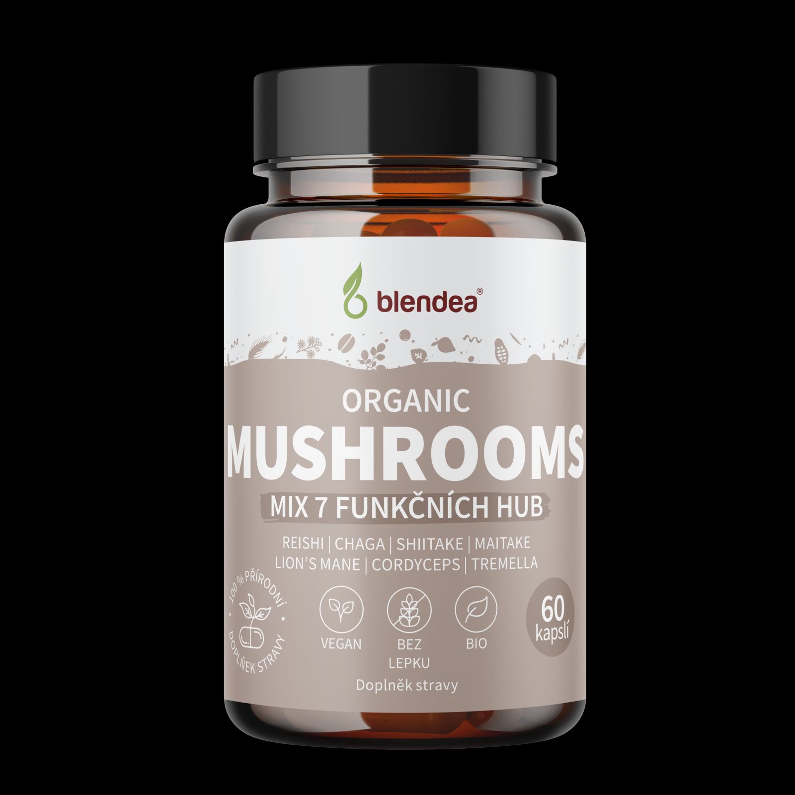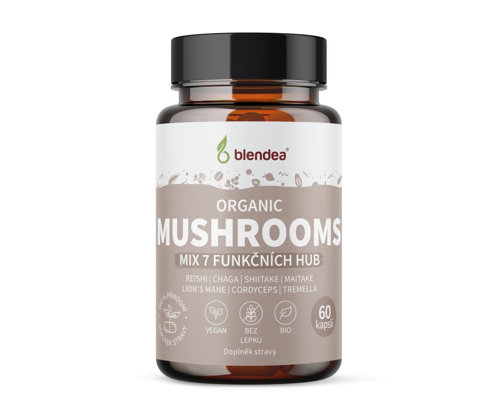 Pro dlouhodobou podporu imunity doporučuje směs Blendea Organic Mushrooms – sedm funkčních hub v bio kvalitě (reishi, chaga, maitake, shiitake, hericium, cordyceps, tremella). Obsahují beta-glukany, polysacharidy a antioxidanty, které přirozeně posilují obranyschopnost.