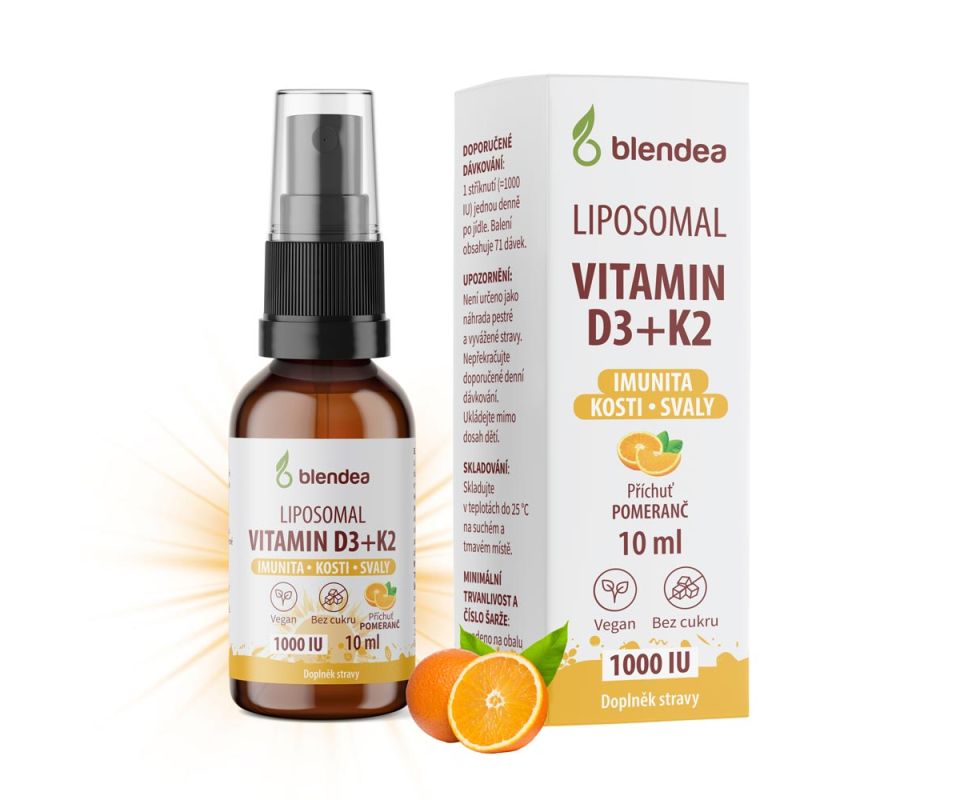 Skvělou volbou je sprej Blendea Vitamin D3 + K2 – bez nutnosti polykání kapslí, s podporou imunity, kostí, zubů i energie.