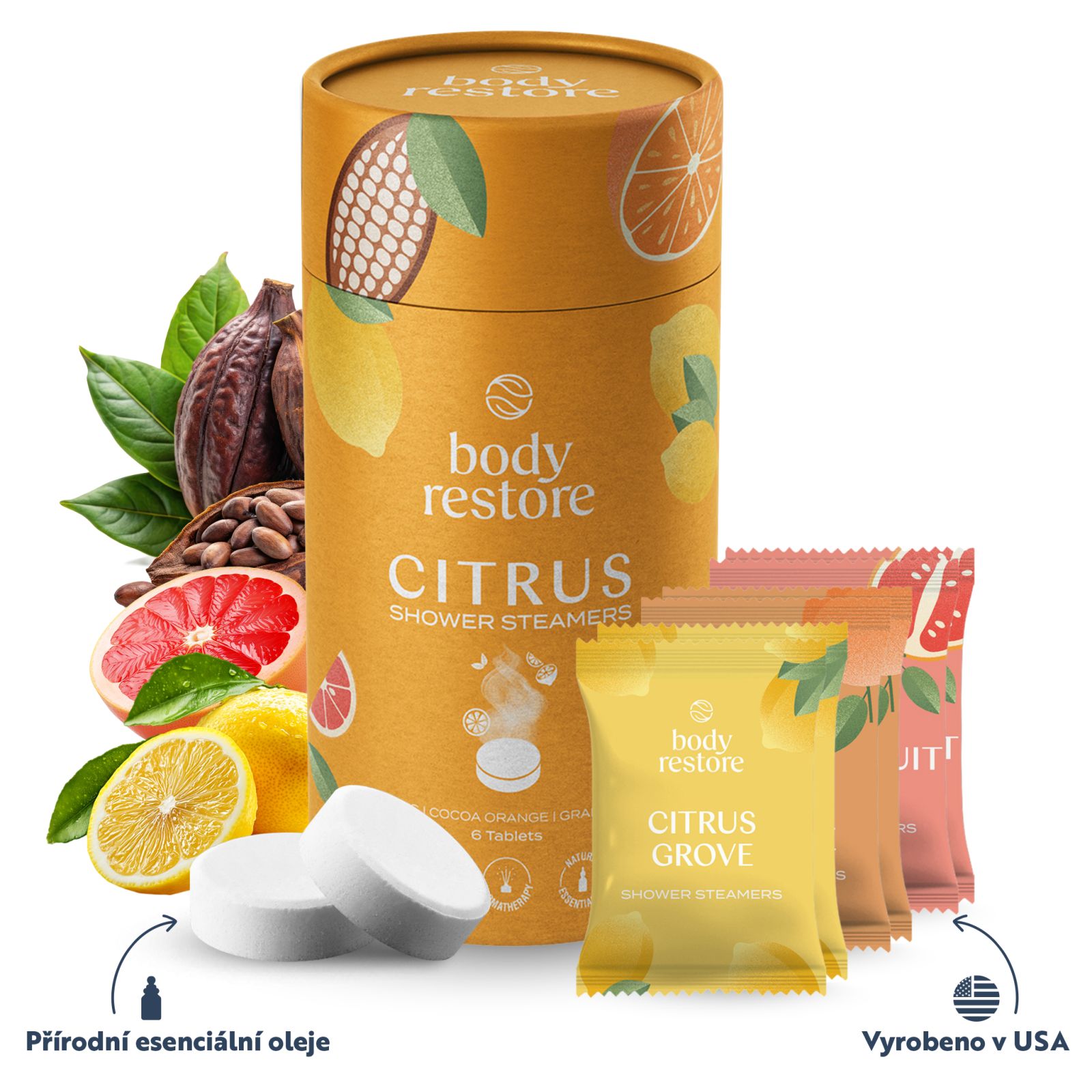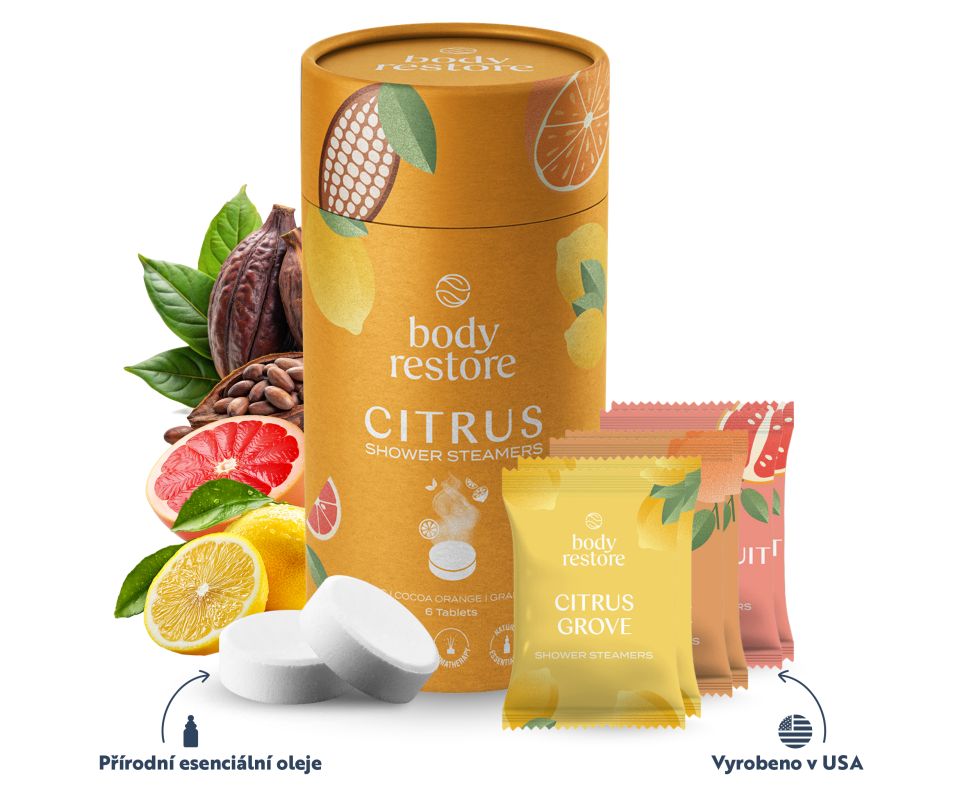 Tablety do sprchy Body Restore Citrus promění každodenní sprchovou rutinu v jedinečný aromaterapeutický zážitek, který povzbudí tělo i smysly a zároveň uvolní mysl. Stačí vložit jednu tabletu Body Restore na podlahu sprchy mimo přímý proud vody a přírodní esenciální oleje vás obklopí intenzivní vůní citrusového háje, grapefruitu nebo kakaa a pomeranče. Je to ideální dárek nebo speciální odměnou pro vás samotné. Balení Body Restore (6 tablet) citrusových vůní zakoupíte na Notino.cz za 289 Kč.