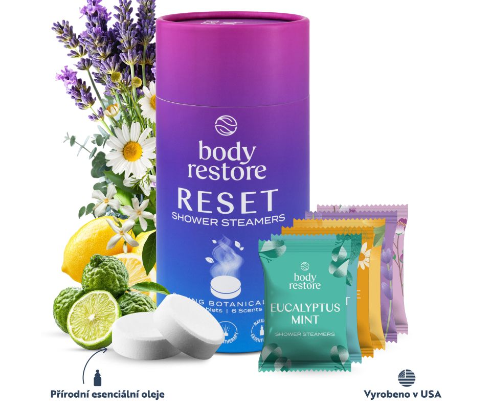 Značka Body Restore pochází z USA, kde se stala nejprodávanější značkou aromaterapeutických tablet do sprchy. Tablety jsou vyrobeny ve Spojených státech, obsahují přírodní esenciální oleje, jsou veganské, cruelty free a bez parabenů. Použití je velmi jednoduché. Stačí položit jednu tabletu Body Restore na podlahu sprchy mimo přímý proud vody. Teplá voda ji začne pomalu rozpouštět a aktivuje směs přírodních esenciálních olejů, které se uvolňují do prostoru. Sprchový kout se během okamžiku naplní vůní, která povzbudí tělo, zklidní mysl a probudí vaše smysly. Každá tableta se beze zbytku rozpustí, nezanechává zbytky ani mastný film a neucpává odpad, takže po sprše zůstává vše čisté, jen příjemná vůně a pocit svěžesti.