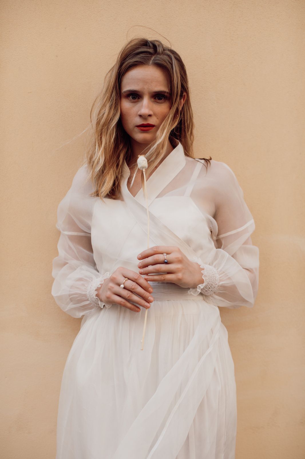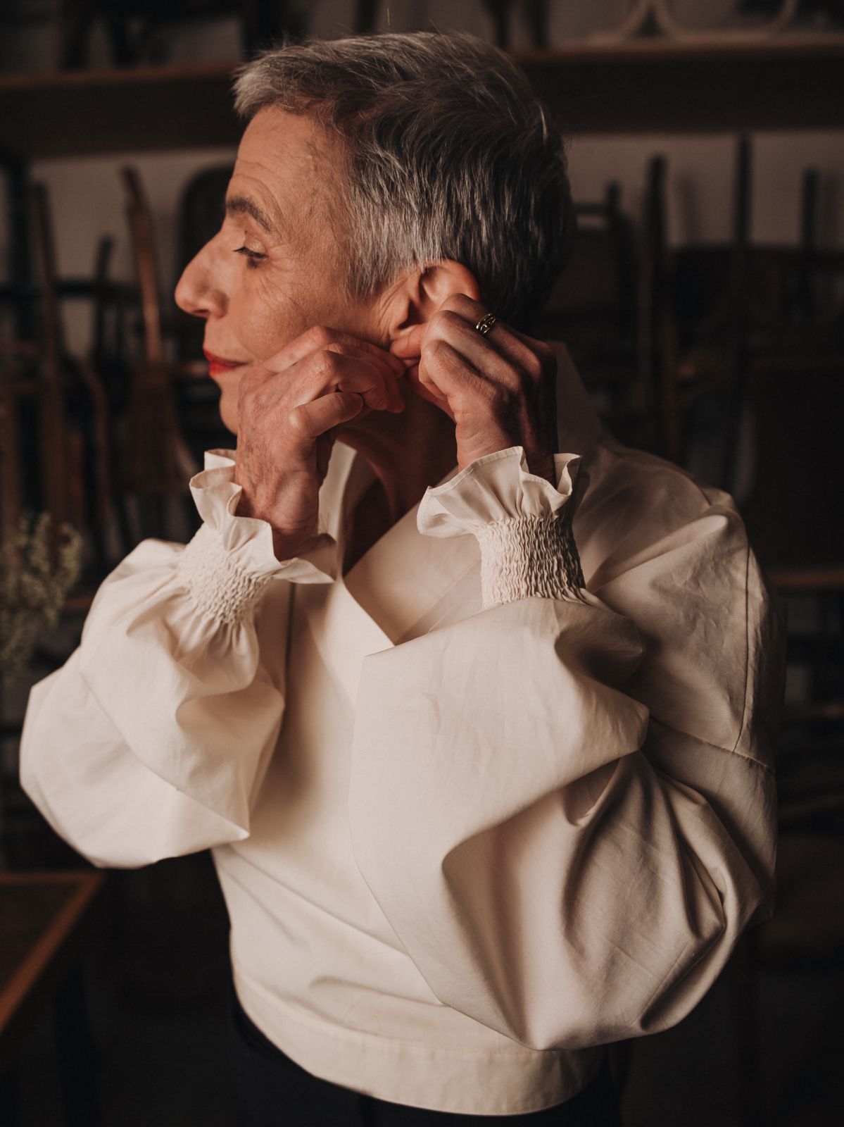 „Mám ještě zarytou představu, že oblečení vyjadřuje osobnost. Chtěla bych, aby to byla elegance, jednoduchost, udržitelnost, a v mém případě také to, že každý jeden kousek má pro mě nějakou zásadní genezi,“ říká designérka. „Ať už to je výběr střihu, látky nebo vintage knoflíků které nakupuji pokaždé, když někam cestuji. Většina věcí, které dělám na zakázku, jsou tak úplně ojedinělé kusy s nádechem cestování, vintage a lehkosti.“