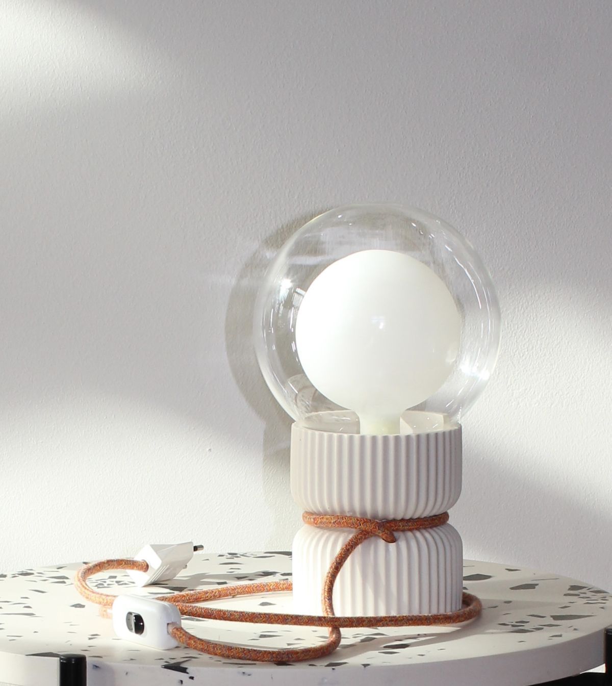 Designová lampa s žebrováním je důkazem, že jesmonite dokáže v interiéru divy. Díky své struktuře a matnému bílému povrchu si pohrává se světlem a stíny i ve chvíli, kdy je zhasnutá. V kombinaci s barvou Cloud Dancer vnáší do prostoru pocit vzdušnosti a meditativního klidu, který je pro nadcházející sezónu klíčový.