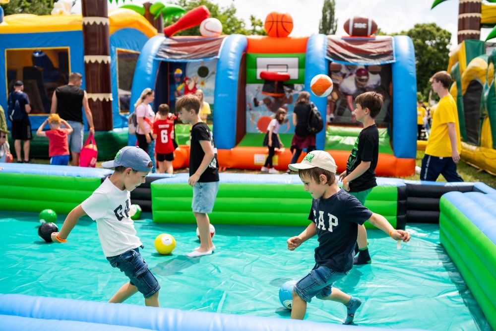 Součástí festivalu je více než 30 atrakcí dostupných po celý den – od skákacích hradů a vodních prvků přes obří multislide skluzavky až po stometrovou překážkovou dráhu, nejdelší v České republice. Festivalové město doplňují tematické zóny zaměřené na pohyb, kreativitu, vzdělávání i objevování nových dovedností.