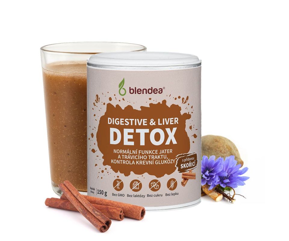 Blendea Digestive & Liver Detox představuje funkční směs určenou k podpoře jater a trávení. Díky obsahu ostropestřce mariánského, psyllia a ajurvédské Triphaly nápoj podporuje detoxikaci, reguluje hladinu krevního cukru a přispívá ke klidnějšímu zažívání. Přírodní skořicová chuť usnadňuje užívání nápoje a navyší chuť na něj. Směs stačí rozpustit ve vodě a vypít.