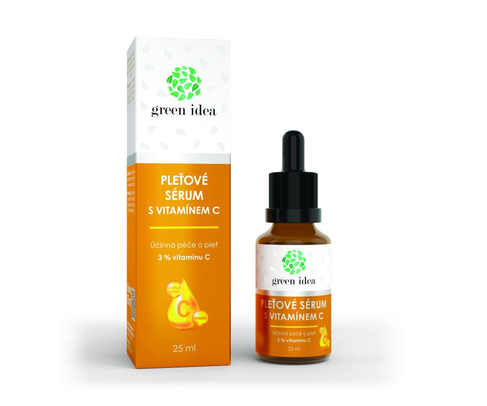 Pleťové sérum Green idea s vitamínem C 3% (298 Kč) využívá kombinaci dvou stabilních forem vitamínu C, které zajišťují vyšší vstřebatelnost a dlouhodobý účinek. Sérum chrání pleť před volnými radikály a znečištěním, stimuluje tvorbu kolagenu a sjednocuje tón pleti. Zároveň pomáhá redukovat pigmentové skvrny a rozjasňuje pokožku. Lehké sérum je vhodné pro všechny typy pleti a je doporučeno jej používat ráno i večer před aplikací krému.