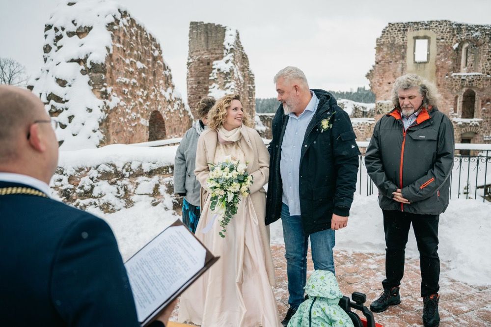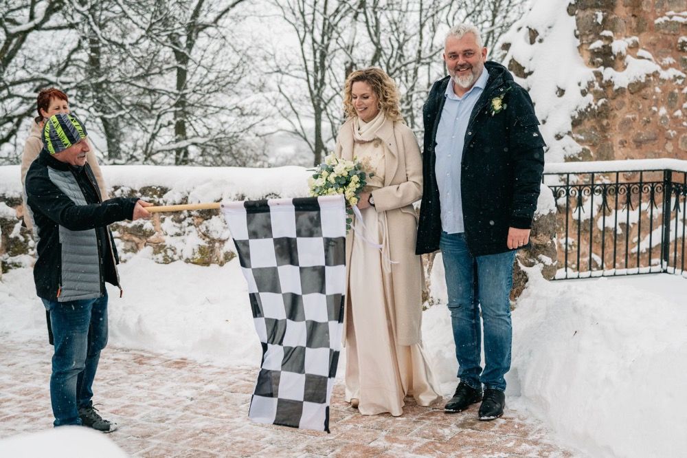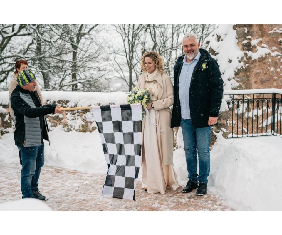 Na hradě Pecka tak vznikla legenda o svatbě, která měla místo startovní rampy oltář, místo navigátora lásku a místo cílové pásky věčnost.