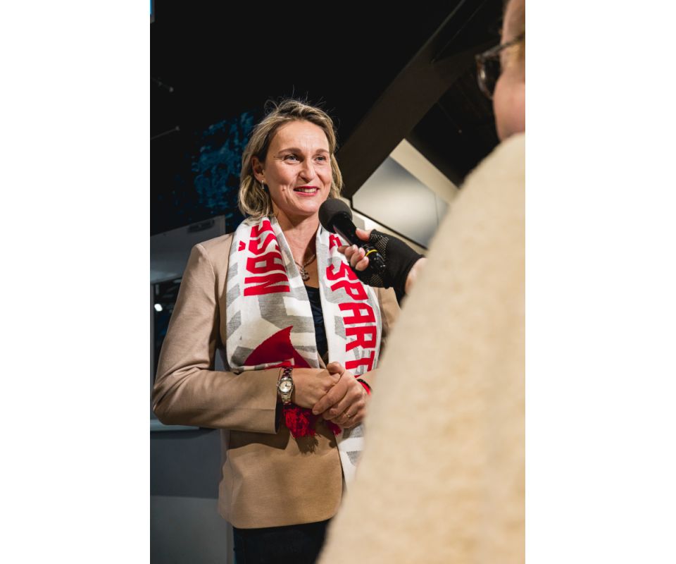 Po boku starosty Prahy 13 Davida Vodrážky usedla v hledišti také legenda českého sportu, olympijská vítězka v hodu oštěpem Barbora Špotáková, patronka připravovaného atletického areálu v Praze 13.