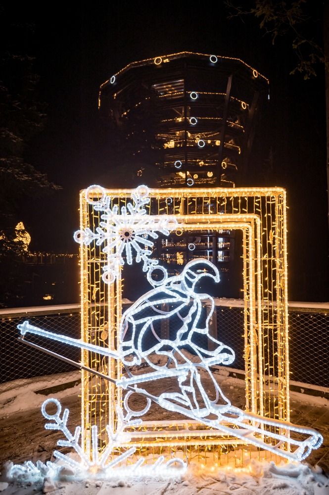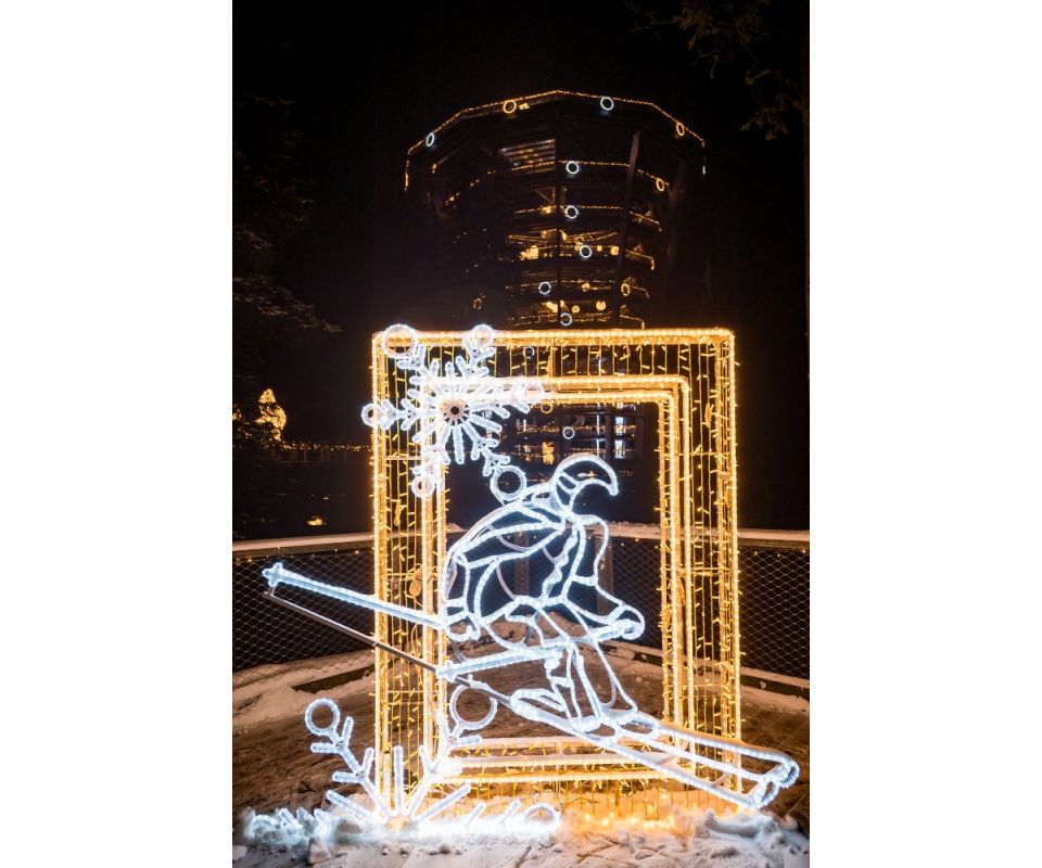 Výrazným prvkem celého projektu je vyhlídková věž Stezky korunami stromů. Decoled ji proměnil v centrální prostor Světelných zimních her. Na jednotlivých podlažích jsou umístěny světelné instalace zimních sportů, doplněné o edukační a interaktivní prvky. Vrchol věže pak nabízí tematické zastavení věnované historii zimních sportů v Krkonoších a celý projekt tak doplňuje o hlubší regionální kontext.