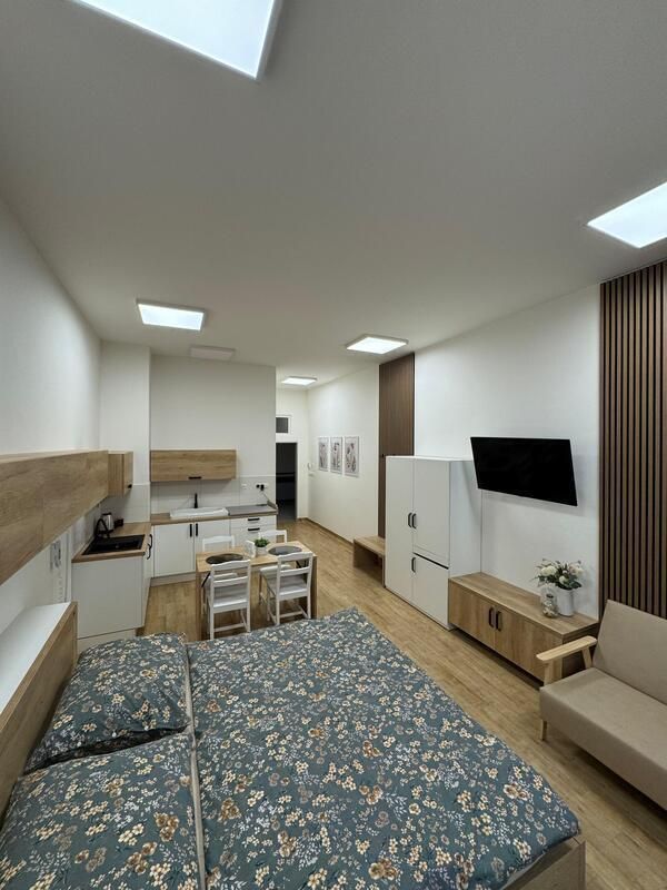 Rodinný pokoj je určen především pro matku, její novorozené dítě, otce dítěte a případně jedno starší dítě. Cílem této služby je vytvořit klidné a bezpečné prostředí pro celou rodinu, podpořit ranou vazbu mezi rodiči a dítětem a umožnit tatínkům být plnohodnotnou součástí prvních společných dní po porodu. Rodinný pokoj je navržen tak, aby se v něm rodina cítila bezpečně, klidně a přirozeně – jako doma. Je plně vybaven manželskou postelí, pohodlnou pohovkou, televizí, sociálním zařízením a kuchyňskou linkou, která umožňuje základní přípravu jídla i drobné občerstvení během dne. Prostor dává rodičům možnost odpočívat, být spolu a soustředit se jen na to nejdůležitější – společné začátky s novým členem rodiny. Každý detail pokoje je přizpůsoben tak, aby podporoval pohodu, soukromí a pocit jistoty v prvních dnech po porodu.