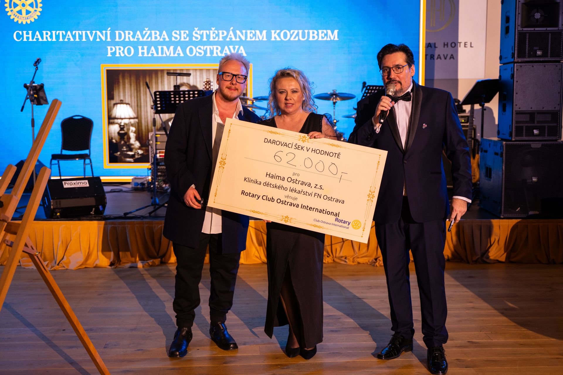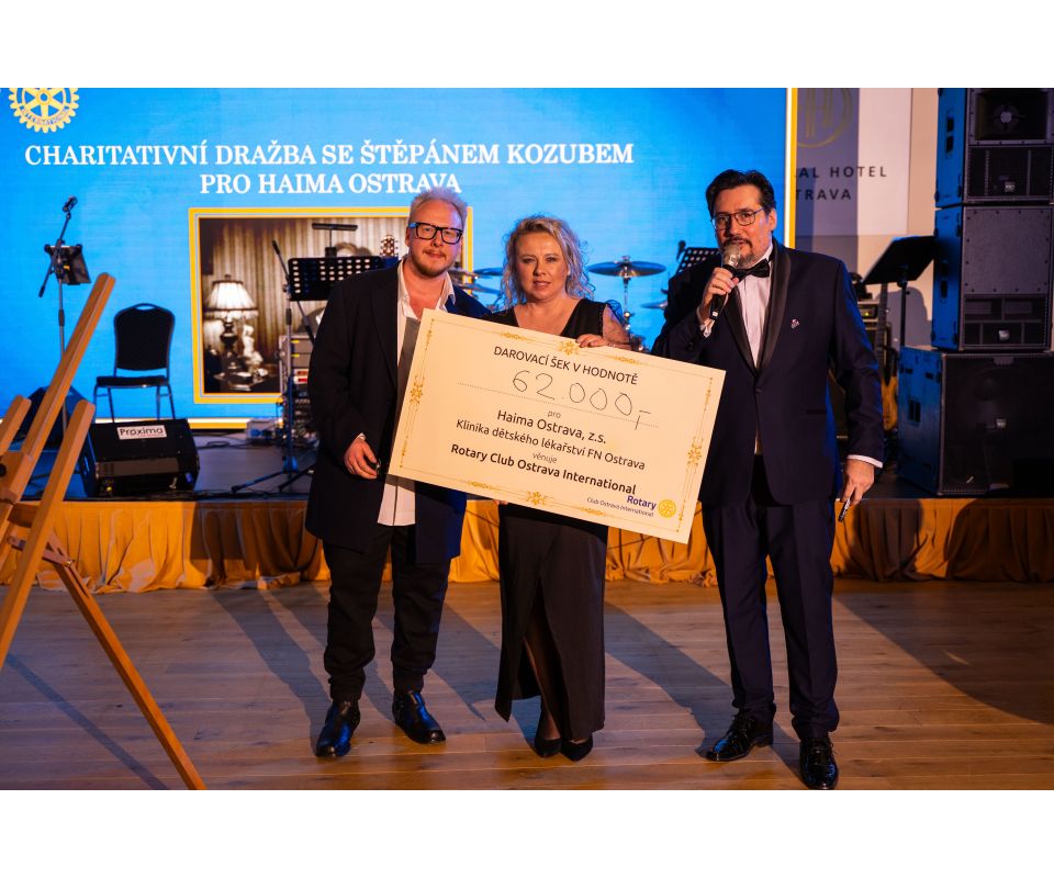 Dražba probíhala ve prospěch HAIMA OSTRAVA, spolku, který dlouhodobě pomáhá dětem léčeným na Klinice dětského lékařství Fakultní nemocnice Ostrava. Letos se podařilo vydražit 62 000 Kč, které byly klinice předány formou symbolického šeku. Atmosféra byla vřelá, energická a plná spontánních momentů, které k benefičním večerům patří.