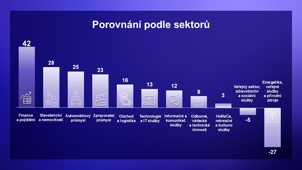 Pokles optimismu však neznamená plošné ochlazení trhu práce. Spíše potvrzuje pokračující strukturální proměnu ekonomiky a rozdílnou dynamiku jednotlivých sektorů.