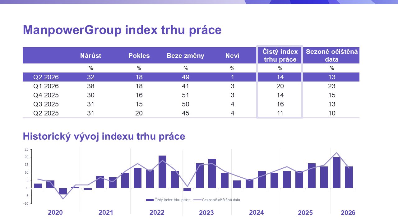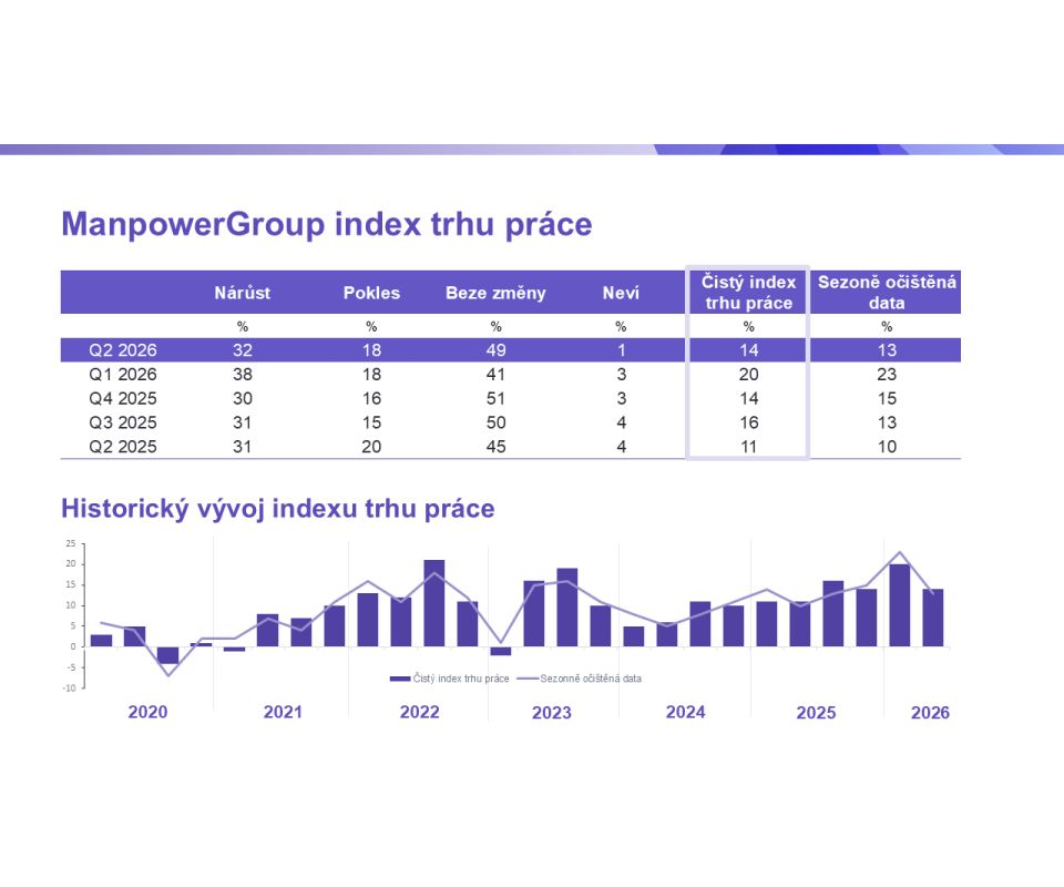 Další výsledky průzkumu ManpowerGroup index trhu práce budou zveřejněny 9. června 2026.