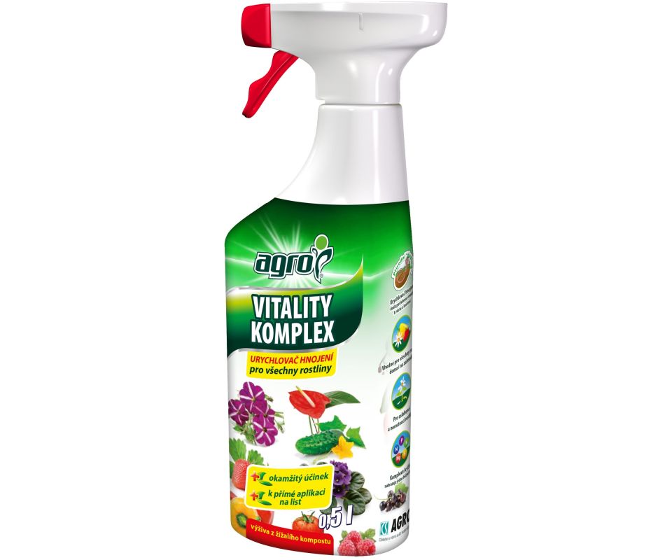 Rostlinám pomůže i Vitality Komplex, přírodní produkt z vermikompostu, který podporuje růst, kořeny i odolnost vůči stresu. Ve spreji funguje jako rychlá pomoc pro oslabené rostliny. Vitality Komplex ve spreji 0,5 l, cena 135 Kč, www.vitalitykomplex.cz